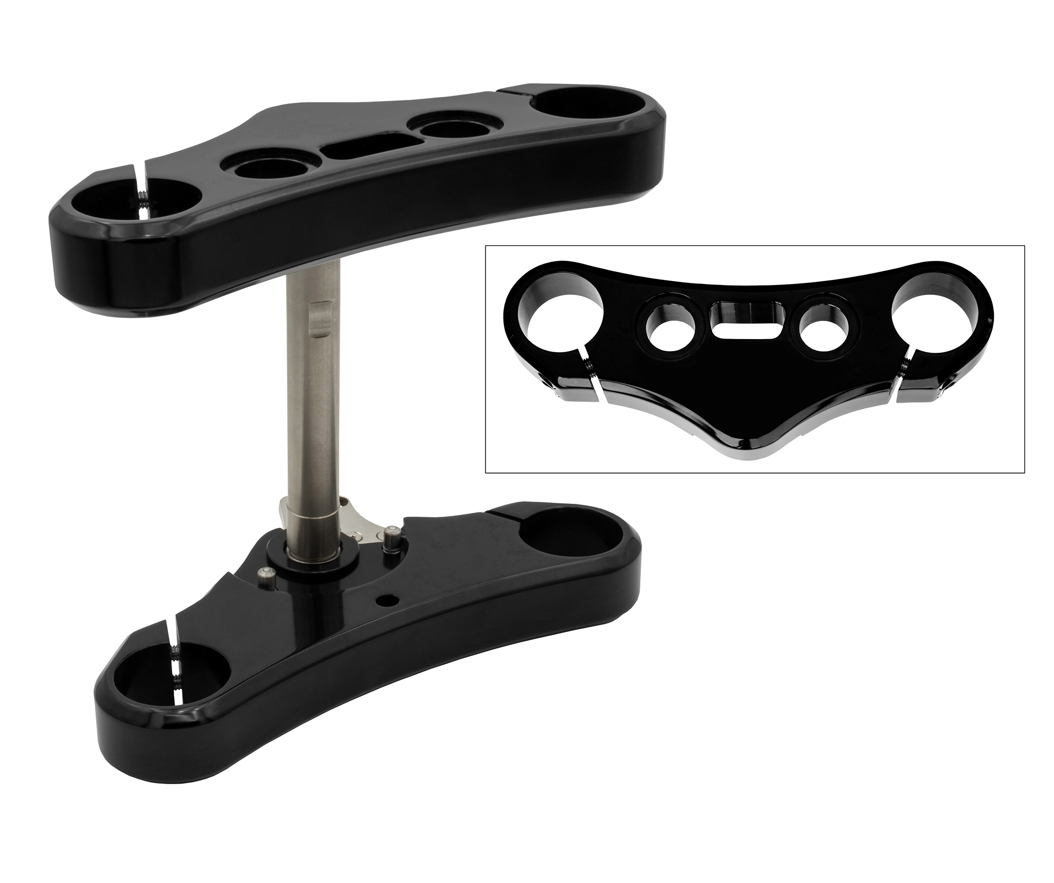 (FXD 49mm MID-GLIDE for 2006-2017) FOR 3° RAKE. Accutronix Triple Tree Sets include the top tree, bottom tree, stem, stem nut, and fork stops. Accutronix Triple Tree sets come with installation instructions and mounting hardware as required. These Triple Tree sets are machined from 6061 T-6 Billet Aluminum and come in a variety of finishes including Chrome, Polished and Solid Black Anodized.
